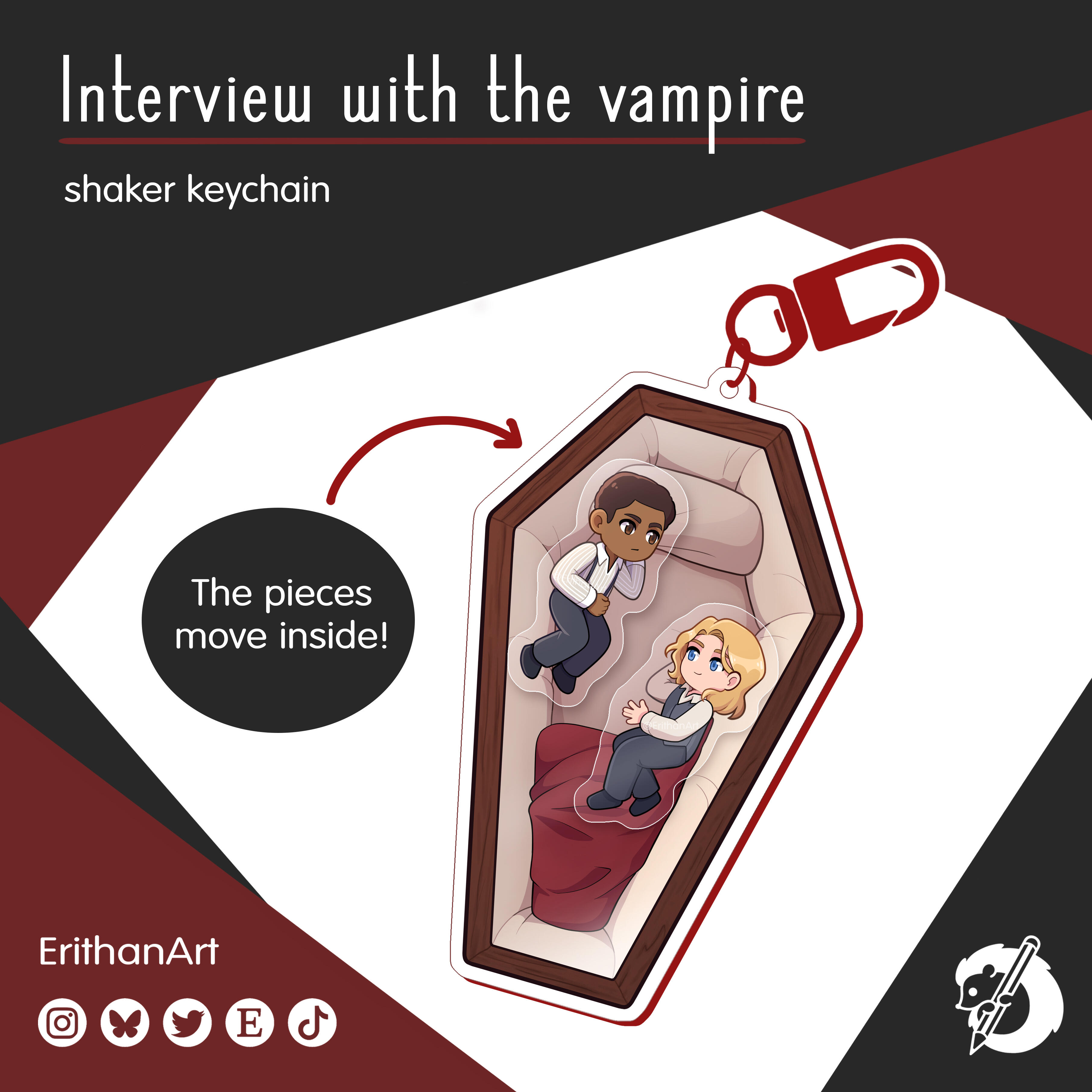 ¡Este tipo de llaveros tienen piezas que se mueven en el interior! En el caso del de Doctor Who, se puede abrir y personalizar qué Doctor o Doctores quieres en su interior y comprarlos todos juntos en un pack por separado. El de Entrevista con el Vampiro en cambio, no se puede abrir.SHAKER DE DOCTOR WHO