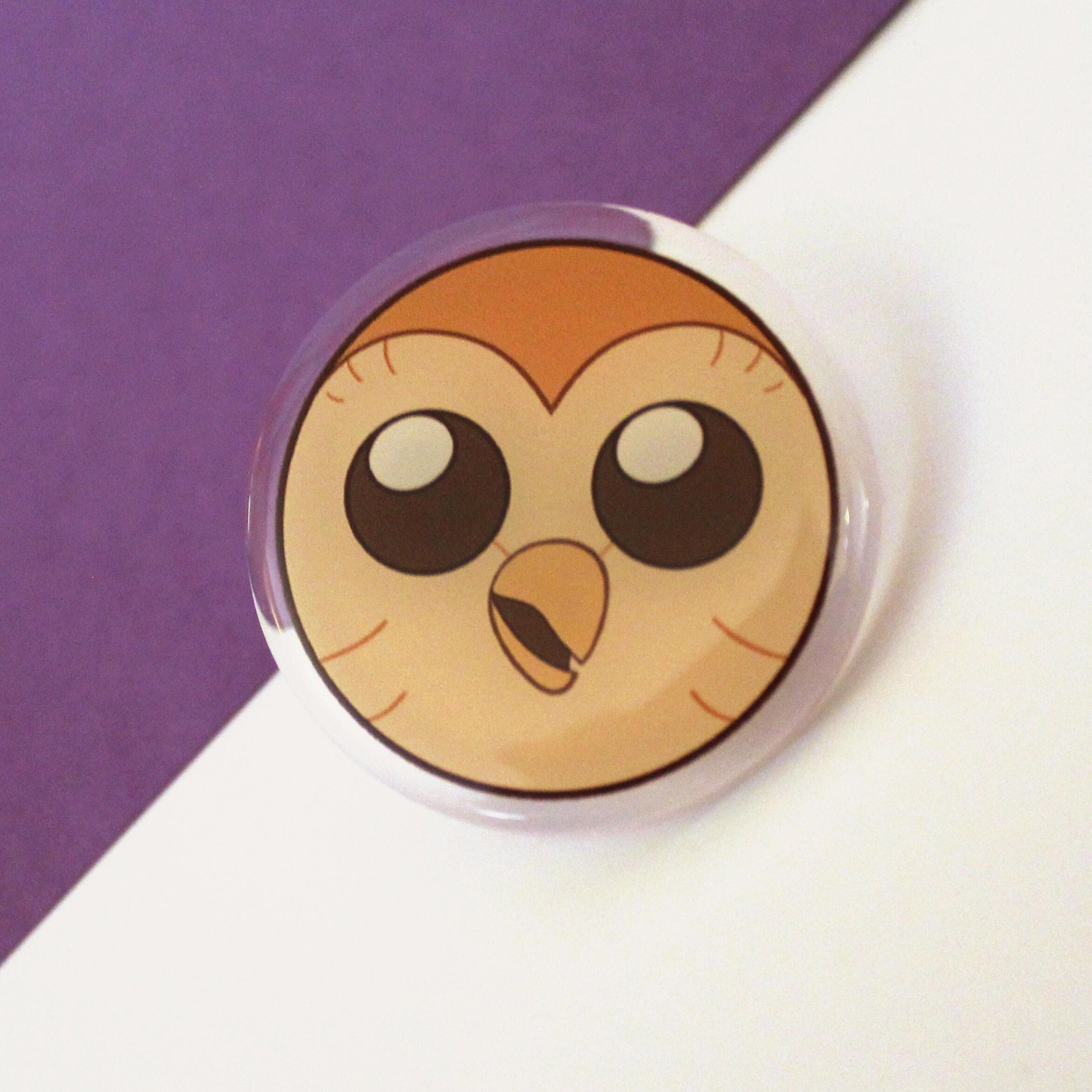 PeaKae & OwlLuc: llavero grande, pin acrílico (5€), llavero chiquito (5€)
